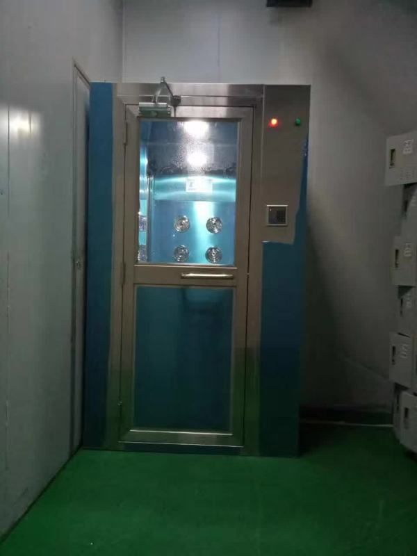 >>配1臺(tái)大風(fēng)量潔凈風(fēng)淋室專(zhuān)用風(fēng)機(jī),功率:0.75KW/臺(tái),確保吹淋效果,風(fēng)速≥22-25m/s, 雙側(cè)吹淋,配12個(gè)不銹鋼噴嘴。