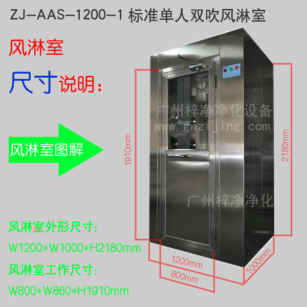 ZJ-AAS-1200-1標準單人雙吹風(fēng)淋室尺寸說明實物效果圖解析