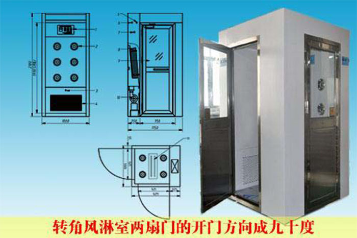 11、轉(zhuǎn)角風(fēng)淋室提供了模塊化的組裝方式,可以根據(jù)實(shí)際需要拼裝成各種長(zhǎng)度的風(fēng)淋尺寸。