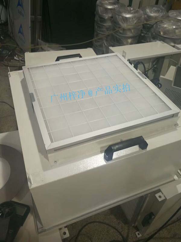 FFU層流罩設(shè)有初效過(guò)濾器、高效過(guò)濾器兩級(jí)過(guò)濾網(wǎng)。風(fēng)機(jī)從FFU頂部將空氣吸入并經(jīng)初、高效過(guò)濾器過(guò)濾,過(guò)濾后的潔凈空氣在整個(gè)出風(fēng)面以0.45M/S±20%的風(fēng)速勻速送出。