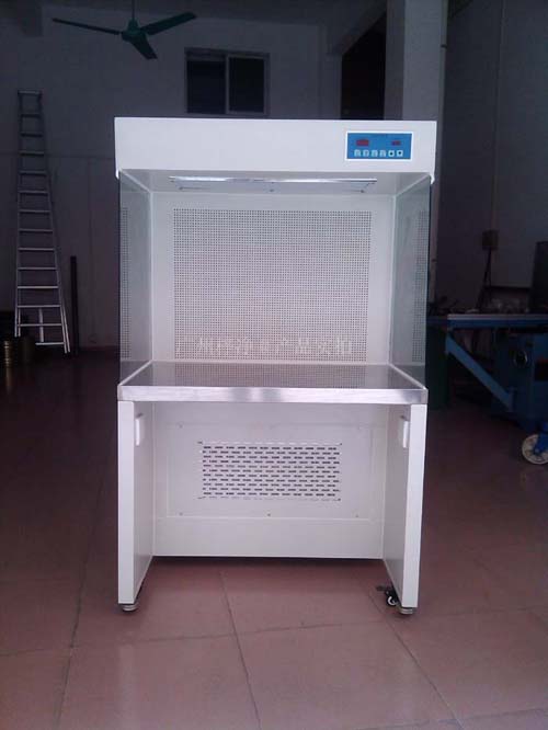 超凈工作臺工作原理主要由室內(nèi)環(huán)境空氣經(jīng)過初效過濾器,由離心風(fēng)機(jī)壓入靜壓箱,再經(jīng)過高效過濾器過濾后從出風(fēng)面吹出,形成潔凈氣流,潔凈氣流以均勻的斷面風(fēng)速流經(jīng)需要凈化的工作區(qū)域,將該區(qū)域內(nèi)的塵埃帶走,從而形成高潔凈度的工作環(huán)境。