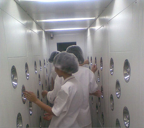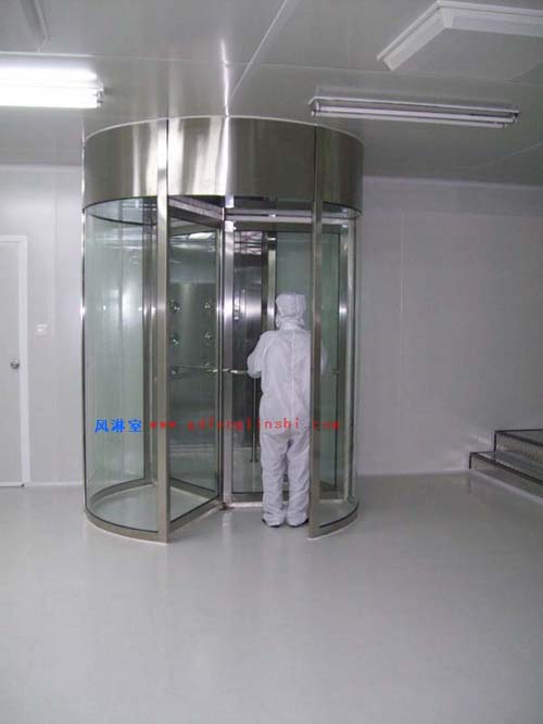 定義:為了減少由于人員進出所帶來的大量塵埃粒子,經(jīng)高效過濾器過濾后的潔凈氣流由可旋轉(zhuǎn)噴嘴從各個方向噴射至人身上,有效而迅速清除塵埃粒子,清除后的塵埃粒子再由初、高效過濾器過濾后重新循環(huán)到風淋區(qū)域內(nèi)。