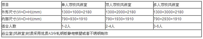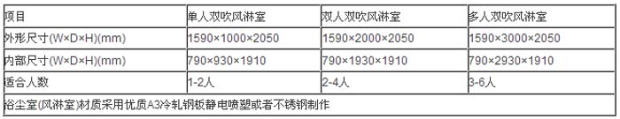 1590風(fēng)淋室標(biāo)準(zhǔn)尺寸技術(shù)參數(shù):