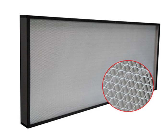 采用超細玻璃纖維紙作濾料,膠板紙、鋁箔板等材料折疊作分割板,聚氨酯密封膠