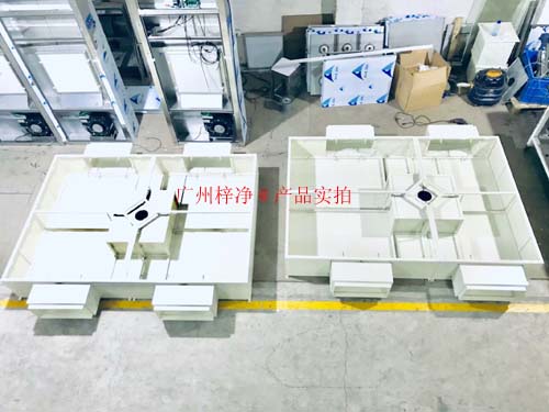 潔凈送風(fēng)天花優(yōu)點是設(shè)置阻漏層,突破了高效過濾器必須布置在送風(fēng)末端的常規(guī)模式;可降低建筑層高;方便過濾器的安裝檢修;使室內(nèi)含塵濃度再次降低,把潔凈區(qū)面積擴(kuò)大1倍以上。適用于手術(shù)室和包括單向流百級區(qū)亂流潔凈間。潔凈送風(fēng)天花制作現(xiàn)場