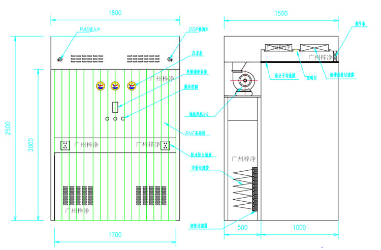 2、頂部送風(fēng),高效過濾器效率≥99.99%@0.3um,操作區(qū)凈化級(jí)別高于房間潔凈度;